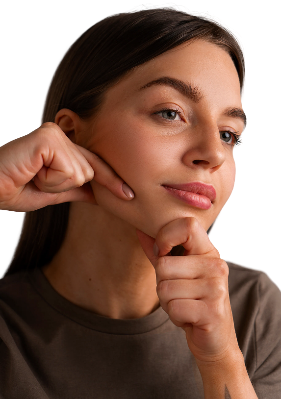 submental triangle erasure: By training the tongue against the palate resistance, you physically lift the hyoid bone, erasing the "double chin" and tightening the submental triangle.